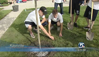 The 19 cadets weeded and planted a tree at a women's shelter in Kaysville. One cadet even built a bench to donate.