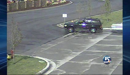 Surveillance photos show two men in a black SUV cutting the chains on the gate and taking the equipment. Police released the photos in hopes that someone recognizes the suspects or their vehicle and can help solving the crime.