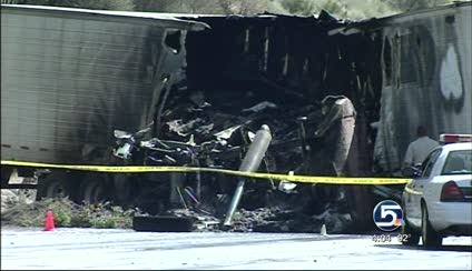 Unified Fire Authority Capt. Clint Smith said when the man's car collided with the semi truck, the truck rolled, and then both vehicles burst into flames.