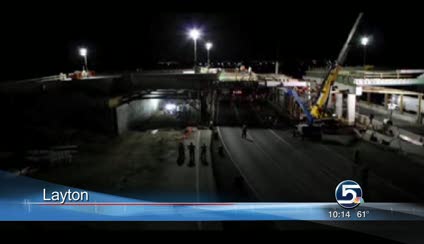 LAYTON -- UDOT took a giant step forward on the South Layton Interchange Project overnight. Crews moved a 2.5-million-pound bridge into place over Interstate 15.