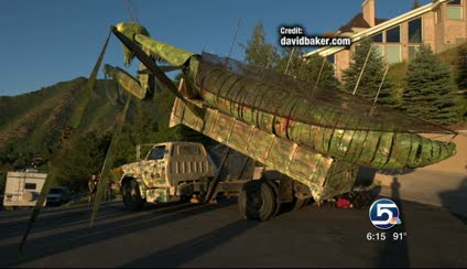 "What we have here is a 40-foot long praying mantis." Jellum says. "The head is 20 feet tall, and it has ten-foot tall antennae and it's actually 30 feet wide as well."