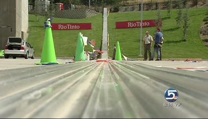 SANDY -- Boy Scouts are going to be very excited when they see the huge track being built for a special Pinewood Derby race to be held Saturday at Rio Tinto Stadium. It's not just the biggest track in Utah, it's the biggest ever.