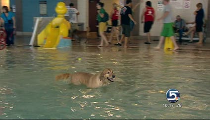 This is the seventh year the fitness center has sponsored the pet-friendly event, which includes a long-jump competition and a pool-length dog paddle race, before the pool is closed for annual maintenance. The pool will be drained and cleaned, and people won't be allowed back until it reopens Sept. 8.