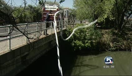 Salt Lake Fire Department Battalion Chief Mark Carson says hazmat teams and fire crews were called out to a part of the river near Interstate 80 after receiving reports of a possible oil leak. Crews followed the sheen upstream and determined it must have come from an area near a utilities building, but not from the building itself.