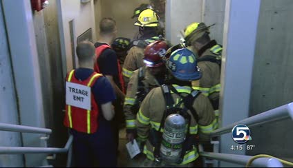 Firefighters lifted potential patients off the roof to practice what they might have to do if a 7.2 earthquake hit Salt Lake City.