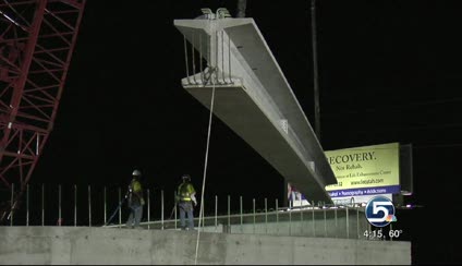 Wednesday night, construction crews closed the freeway in Spanish Fork to place beams on the 2700 North bridge.