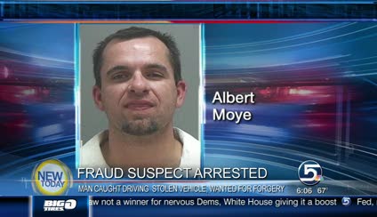 Police booked 36-year-old Albert Moye into the Salt Lake County Jail on forgery and stolen vehicle charges.