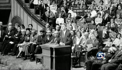 While here 50 years ago, Kennedy met with then-LDS Church President David O. McKay and spoke to a very packed house at the Salt Lake Tabernacle.