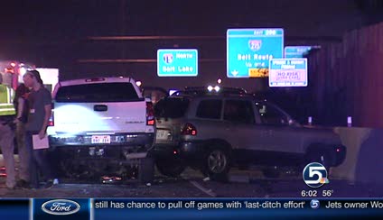The Utah Highway Patrol says it happened around 8:15 p.m. when the driver of a pickup slowed for traffic near 7500 South. The truck was rear-ended by the car behind it.