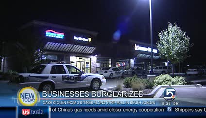 Thieves broke into Sherwin Williams, UPS, and Envy Sun -- all on the corner of Bangerter Highway and 10400 South -- just before 11 p.m. Sunday.