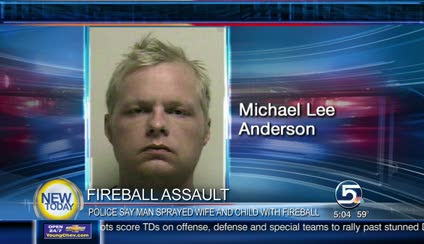 The next day, police say Anderson lit a match and sprayed cologne toward his wife, who was holding one of their children, creating the fireball. She stepped away from the flame and was not injured.