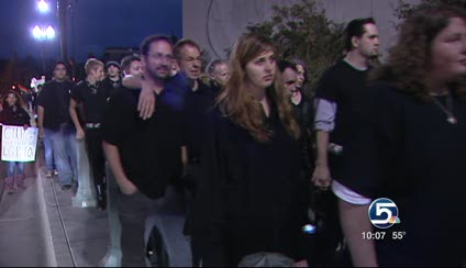 Thursday night, Salt Lake City police officers estimate close to 600 people gathered in protest, but organizers say it was closer to thousands. Many were members of the gay and lesbian community. Most of them dressed in black, to make a statement of unity.