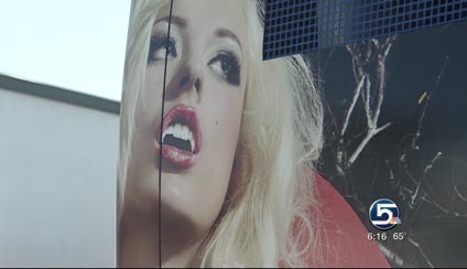 The Halloween ads for the lingerie store Blue Boutique run on 16 UTA buses that travel mostly through the Salt Lake Valley, with a few through Ogden. They feature a vampire with a little too much "va-va-voom" for some of the general public.