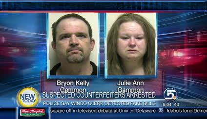 Investigators say the Gammon's counterfeiting scheme fell apart when the clerk at Winco felt the money wasn't right and confronted the Gammons about it. They grabbed the money and fled the store.