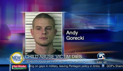 Police confirmed the infant was Tayshaun Michael Gorecki. The boy's father, 25-year-old Andy Gorecki, was arrested for investigation of child abuse in December after police say his story about what happened to the child didn't match injuries. Prosecutors later charged him in the 5th District Court with second-degree felony child abuse, which police say would likely be amended to child abuse homicide.