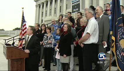 Members of Utah's Tea Party gathered at the State Capitol for a news conference Monday. They are among those who want a change, namely Jim Matheson's opponent Morgan Philpot.