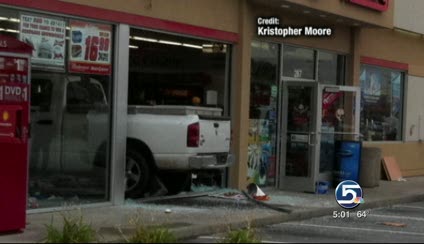 Police say a male driver had just pulled up to the front of the store when the pickup jumped the curb at a low speed, crashed through the window and stopped when it hit a pillar inside.