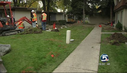 Resident Tyrell Stevens said he came home from work a week ago Tuesday and saw workers examining an underground gas line they had dug up. He said holes in the line were big enough he could put two fingers in them.