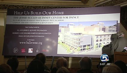 SALT LAKE CITY -- Ballet West is about to have a new home, and the Capitol Theatre a new look. The cost: $32 million. Representatives from the arts community and elected officials gathered Monday for the announcement.