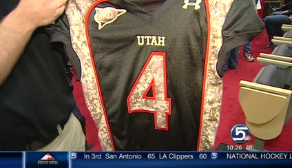 The jerseys, which have core values like "honor," "integrity," "country," "service" and "duty" on the back instead of last names, will be auctioned off online Monday at www.utahutes.com.