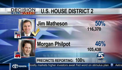 UTAH COUNTY -- Democrat Jim Matheson will keep his seat in the U.S. House of Representatives.