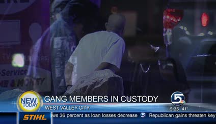 WEST VALLEY CITY -- Five known gang members are in police custody after a West Valley City homeowner spotted them spraying graffiti on a barn.