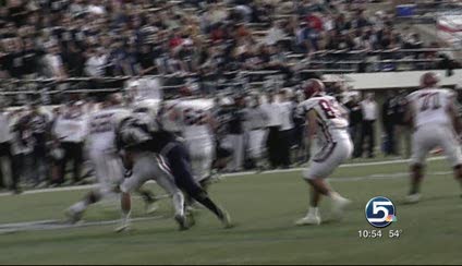 Utah State (3-6, 1-4 Western Athletic Conference) took its first lead of the game with 9:07 to play in the game when quarterback Diondre Borel pitched to Eric Moats on an option run for a 12-yard score, giving USU a 24-20 edge. On its next possession, USU opted for a 24-yard field goal by Peter Caldwell rather then attempt a fourth-down play on the 2-yard line, to make the score 27-20.