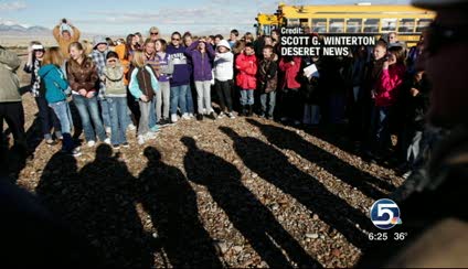 The Tooele Army Depot gave 80 fifth- and sixth-graders a tour of its 262-foot-tall wind turbine, which has blades that stretch 126 feet long.