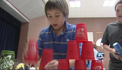 SALT LAKE CITY -- Fingers were flying at Hawthorne Elementary School as more than 500 students attempted to break a cup speed-stacking record.