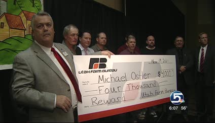 LAYTON -- At Friday's Farm Bureau convention a $4,000 reward was given to a family who turned in a group of teenagers who were caught shooting cattle to death in Tooele County.