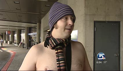 SALT LAKE CITY -- In spite of the cold weather, a nearly naked man staged a protest at the Salt Lake Airport Wednesday. It was part of a small-scale national revolt against full-body scanners and intimate pat-down procedures by airport security.