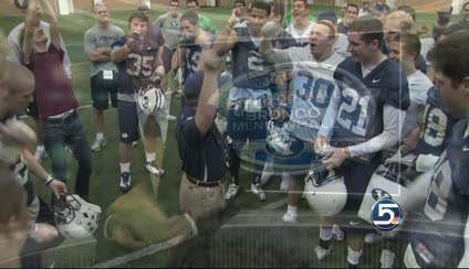 Brigham, surrounded by the team, helped the team chant: "Brigham! Brigham!"