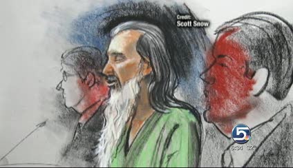 Mitchell routinely enters the courtroom singing each morning. His eyes are closed and his hands clasped before him like he is in the middle of praying. He sits at the defense table, stopping only occasionally when he goes to select the next song. Sometimes he stumbles on the words. But he continues until the judge orders him to be removed to a nearby annex where he can see and hear the court proceedings, his voice drifting back as he leaves.