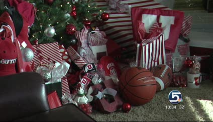 Last year the Cox family lost their father Neil to swine flu. He was huge Ute fan, so to honor him the community created this tree filled with University of Utah paraphernalia and donated it to the Festival of Trees.