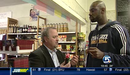 He then related an experience when he asked Raja Bell to try some of his licorice, but Bell instantly spit it out. Glaring at the camera, Elson said, "He's lucky he's on my team."