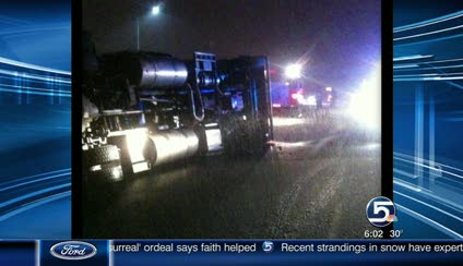 Crews in Orem worked to clear a tanker that rolled on its side. Police say the driver was going too fast for the slick conditions while coming out of Provo Canyon and rolled on 800 North around 2:30 a.m.