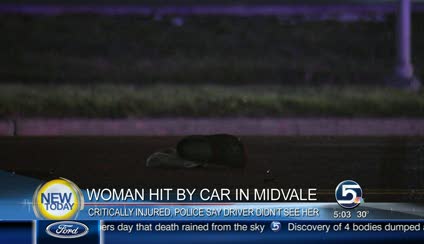 MIDVALE -- A woman was hit by a car while trying to cross a dark street in Midvale.