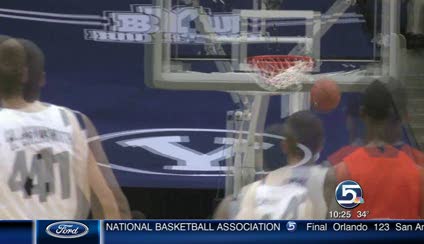 An authoritative jam by Fredette after a steal by Emery pulled BYU within 19-17 with 8:23 left in the first half and Fredette gave BYU its first lead, 20-19, with another 3-pointer.