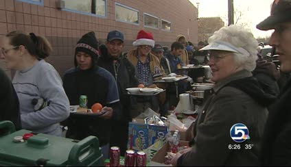 Volunteer Rich Martinez said, "We call it our chili dog Christmas. So for about 10 years now, we get chili dogs, come out every year with the kids and set up like this. These people here, we see them very year. It's a little competition to see who gets here first. And we just try to feed as many people as we can. It's a fun time."