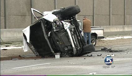 Officers say the driver of a car going too fast lost control on black ice at 13400 South around 7:15 a.m. The car crashed into a barrier and rolled.