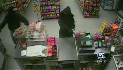On surveillance video, they can be heard saying, "Give me the money! Hurry up! Hurry up! [Expletive] open the cash register homeboy! Open the cash register! Hurry up!"