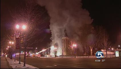 The alarm at 1:10 a.m. on the day of the fire showed something was going on in the attic of the Tabernacle. A security officer patrolling the outside of the building did not find an intruder inside and did not smell any smoke.