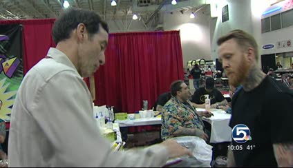 Tony Michelli, of Corinne, was one of thousands of people at the Salt Palace Friday getting a new tattoo at the convention.