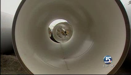 "There's a big component of recycled steel in these pipes. Some of it is new steel that has been manufactured, but a large amount of it is recycled materials, like the ‘Cash for Clunkers' cars," said Michael Wray, the operations manager Northwest Pipe Company.