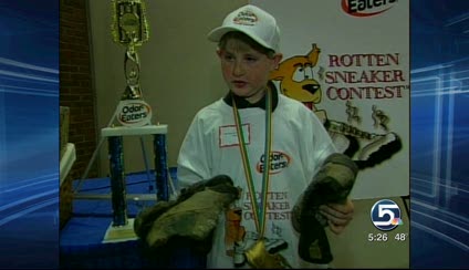 The boy from Benjamin, Utah, who likes to tromp around outside in his sneakers, looking for frogs and bugs, won top honors Tuesday in the 36th National Odor-Eaters Rotten Sneaker Contest, held in Montpelier, Vt.