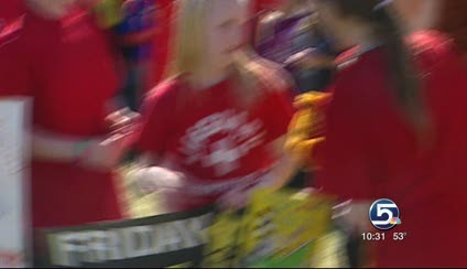 Next stop on our flight path, Bountiful's Muir Elementary, home of the Leo Lions. Leo the mascot, cheerleaders and more enthusiastic students cheered again as the chopper landed.