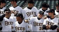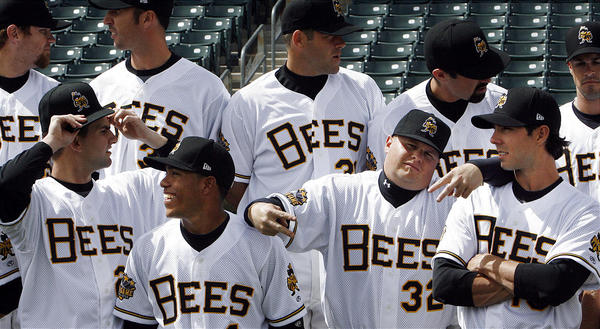 A few feet away from Amicone, players are just finishing up team pictures,wearing their classic white Bees uniforms. Many minor league teams wear garish logos on their shirts or caps - what can you do when you're the Batavia Muckdogs? But the Bees long ago decided to be subtle. When the late Larry H. Miller got the rights to the team nickname several years ago, he wanted the uniforms to closely resemble those he saw as a kid.