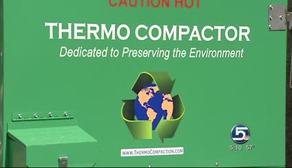 "We found another product -- which is like a big heater about the size of a Dumpster - that melts all the Styrofoam trays and melts it down into a plastic brick; and that can be recycled into flower pots and other kids' things.