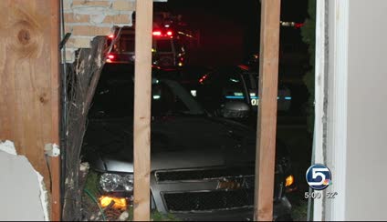 The car knocked a hole in the brick structure of the house and sent debris into a bedroom, said West Jordan Police Sgt. Drew Sanders.