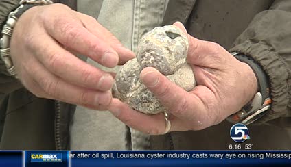 "These were a gas bubble in a volcanic rock," Garahana explained. As they filled with water, beautiful layers formed inside. Rockhounders hit the geodes to find what's inside.